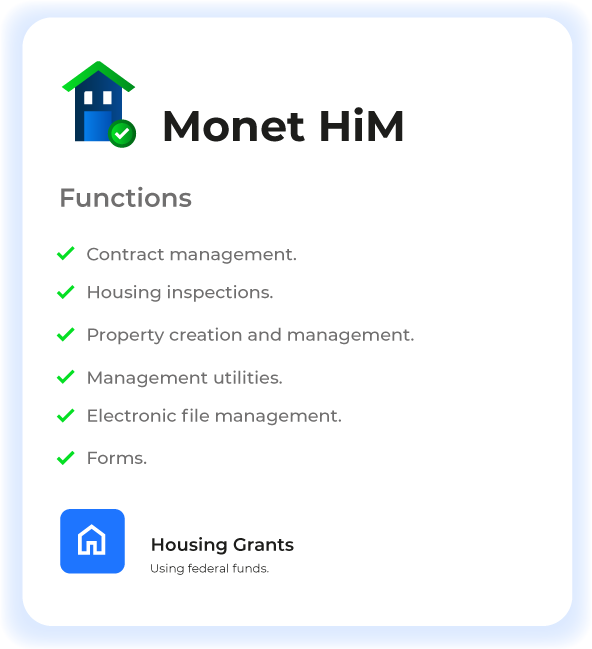 Monet HiM is a module under development, created to assist the municipality in the process of granting housing vouchers or units funded by federal funds.